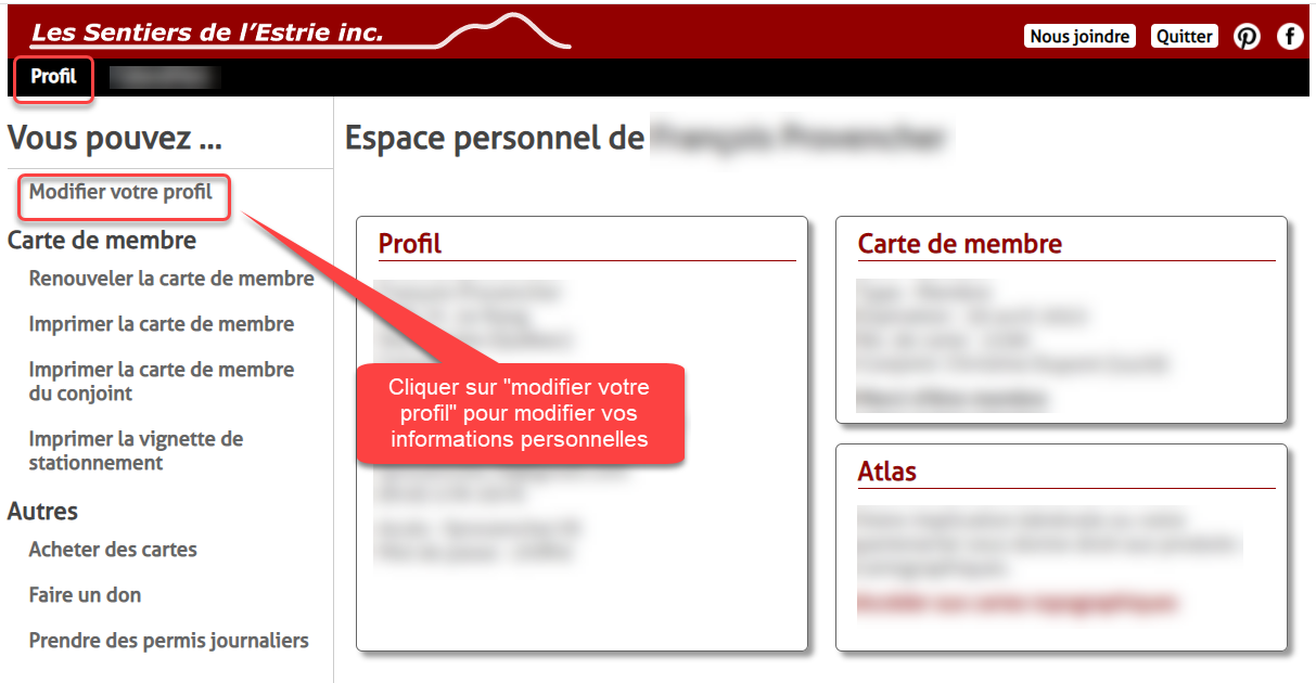 En cliquant sur ce lien, vous arrivez à cette page et vous devez cliquer sur "modifier mon profil" pour accéder à la page d'édition pour modifier votre identifiant ou votre mot de passe.